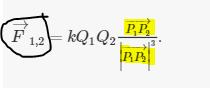Om vi har en laddning Q1 i punkten P1 och en laddning Q2 i punkten P2 så ges kraften på den andra laddningen från den första laddningen av formeln