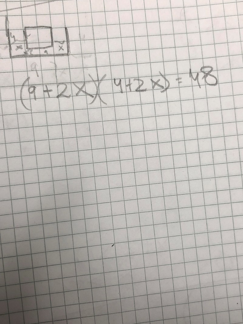 (9+2x)(4+2x)=48 . Men den ekvationen är inte rätt.