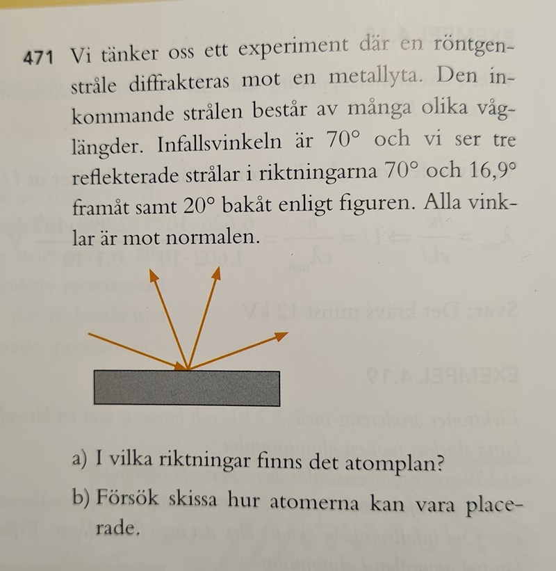 Jag försöker bilda mig en uppfattning hur den här uppgiften menar att atomplan är placerade så att vinklarna är givna mot normalen som i uppgiften.