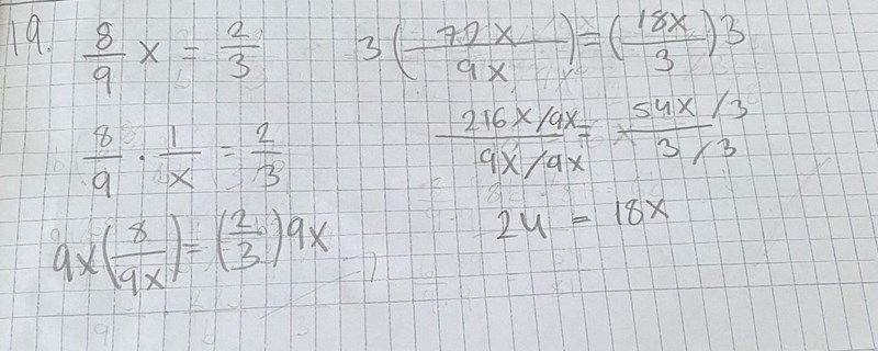För att få x ensamt multiplicerar jag båda leden med 9/8.