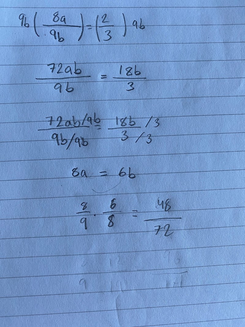 Men 8/9 är det ena bråket och a/b det andra.