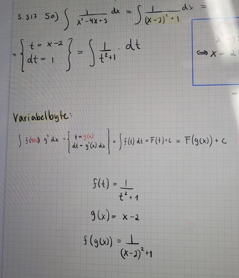 Jag har ju andra beteckningar men det är samma sak. Hur visste du att du=dx. Jag får att dt=1