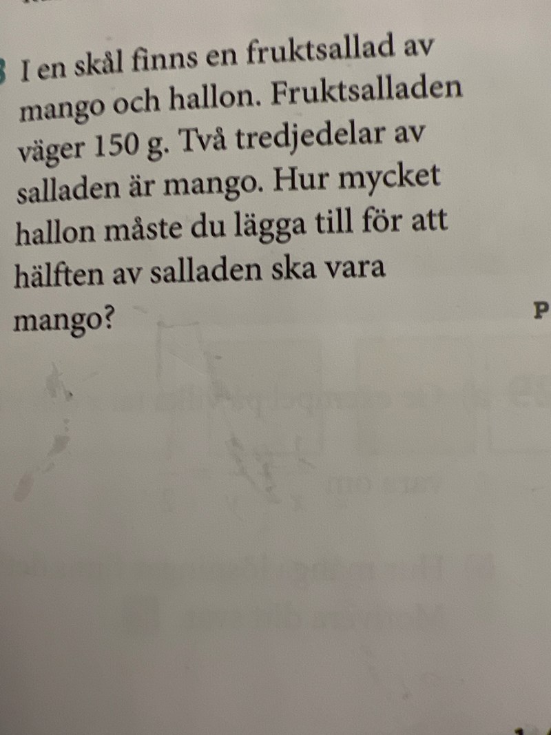 Men hälften är 150/2= 75g