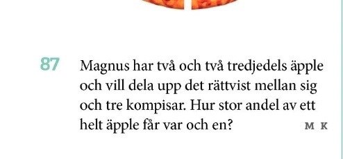 På ett helt äpple så finns det 3/3. På två hela äpplen så går det alltså 6/3.