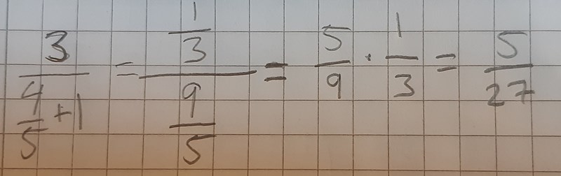 Jag ska beräkna 3/((4/5)+1).