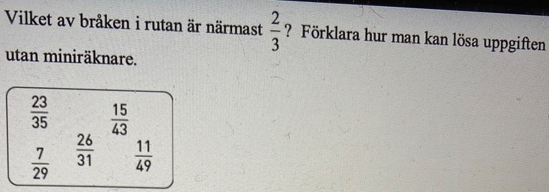 Du ska bara uppskatta vilka som kan vara lika med 2/3. Det är inte helt men ganska jämstora tal som bildar 2/3.
