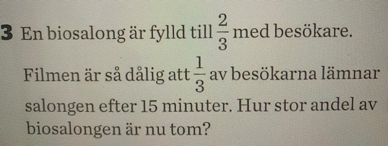 En tredjedel av två tredjedelar är alltså två niondel av alla sittplatser. (Och det måste vara ett heltal, halv besökare finns inte.)