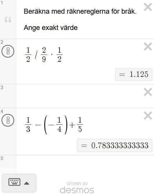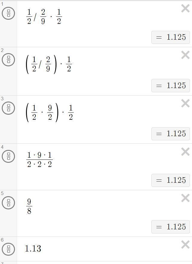 Nu är ju 1,125 också exakt eftersom divisionen går jämnt upp, men en bra regel är att stanna alltid vid bråkstrecket om du har ett sådant.
