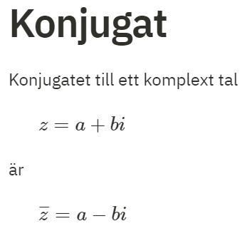om z=a+biz=a+bi så är konjugatet av z: z¯=a-bi