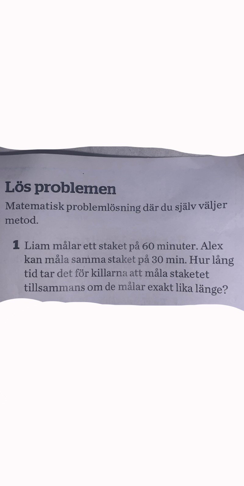 Alex målar hela staketet på 30 minuter alltså dubbelt så fort. Detta betyder att han på en minut hinner måla 1/30 av rutorna, vilket är lika mycket som 2/60 av rutorna, alltså 2 rutor.