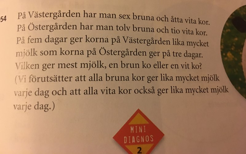 på fem dagar ger korna på västergård lika mycket mjölk som korna på östergård ger på 3