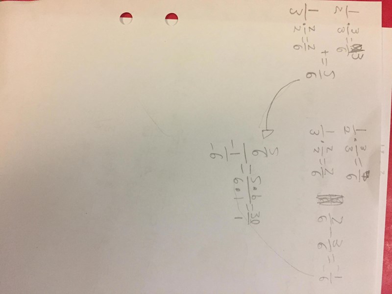 Ja precis 5/6 ska delas med -1/6. Dvs man får att