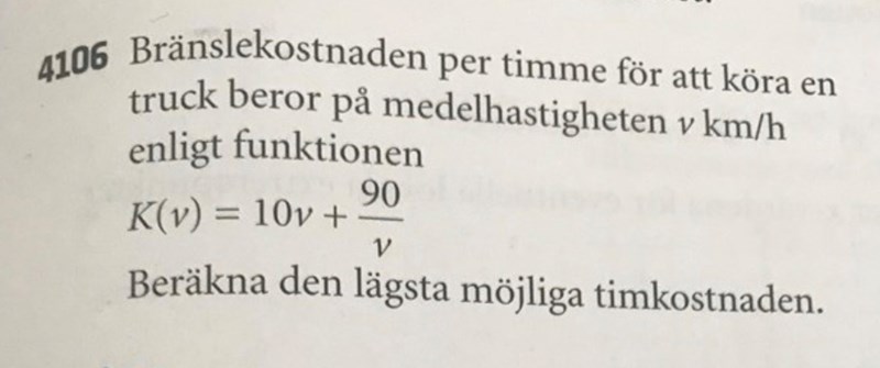 Eftersom kostnaden per timme är lika med K(v) så ska du ta reda på det lägsta värdet som K(v) kan anta.