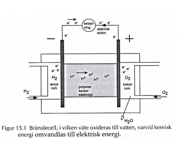 Beskriv uppbyggnad och funktionssätt för en bränslecell.