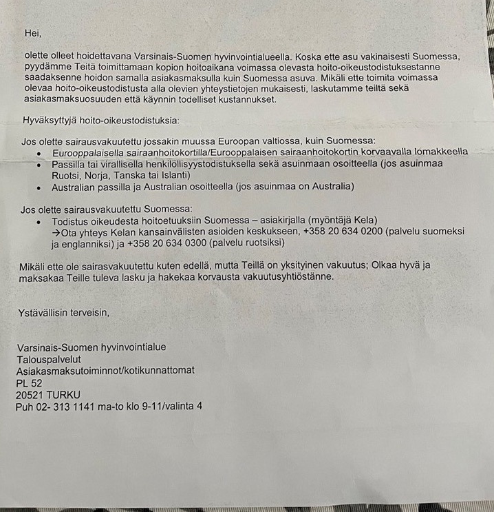 Min dotter fick följande brev på finska från finska myndigheter, kan någon översätta?