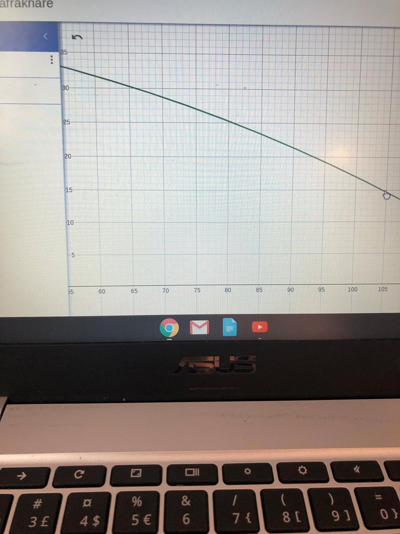 Det jag gjorde var att kolla vilket x värde man får om y = 15.. Då blev det y=103