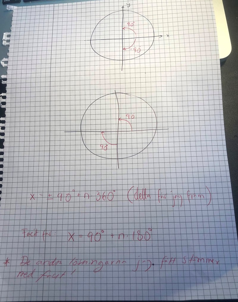 Men de fick ut x=90+ n* 180 medan jag fick X=+/-90+n*360