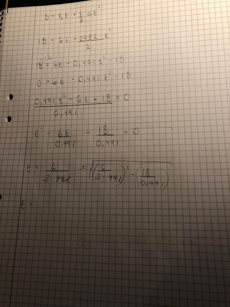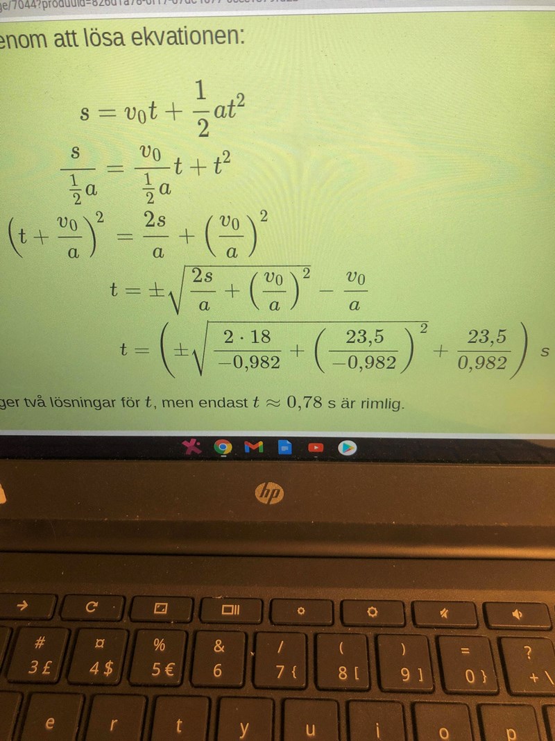 Det blir t=5,2 och t=6,9. Vad gör jag för fel?