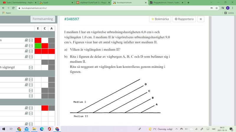 Dr. G skrev:Det är lika lång tid mellan vågfronterna i de båda medierna. Hjälper det?