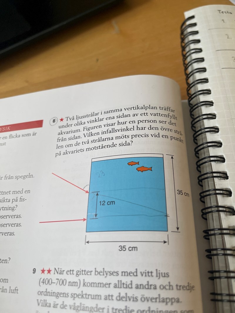 Det verkar som om du tar fel på brytningsvinkeln, den ska räknas mot normalen.