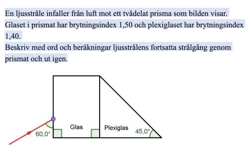 Detta stämmer inte. Enligt facit ska första brytningsvinkeln bli 19,5 grader. Är jag helt ute och cyklar?