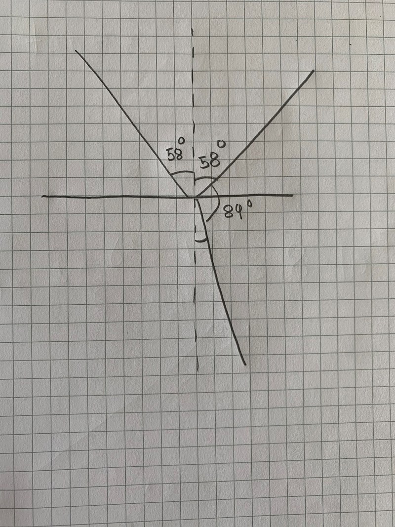 De skriver att vinkeln mellan det ljuset som reflekteras och ljust som bryts är 89°. Du ser den vinkeln i figuren jag ritat. Brytningsvinkeln däremot är inte 89 °. Brytningsvinkeln mäts mot normalen (den sträckade linjen). Alltså måste den vinkeln vara 180-58-89.