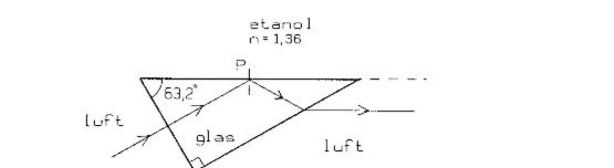 att inget ljus tränger in i etanolen vid P och strälen lämnar prismat