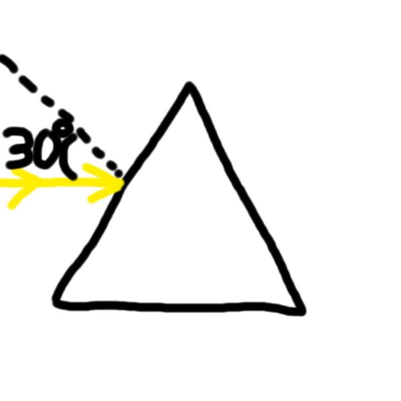 "Vi har ett liksidigt glasprisma med brytningsindexen 1.6 och vi vill bestämma ljusstrålningens väg genom prismat. En stråle träffar sidan av prisman och reflekteras 30 grader uppåt likt bilden."