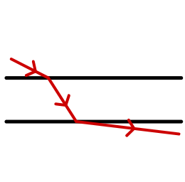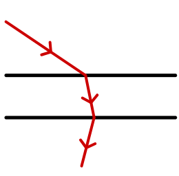 Om du gör en normal i en brytpunkt kan ljuset bara gå från vänster till höger eller tvärtom. Det kan alltså inte gå från vänster sida innan brytningen och sedan fortsätta på vänster sida efter brytningen.