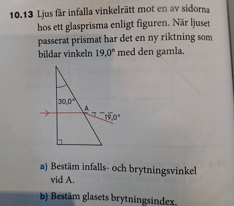 Är det infallsvinkeln som är , i sådana fall så mäter man den gentemot normalen för ytan. Dvs