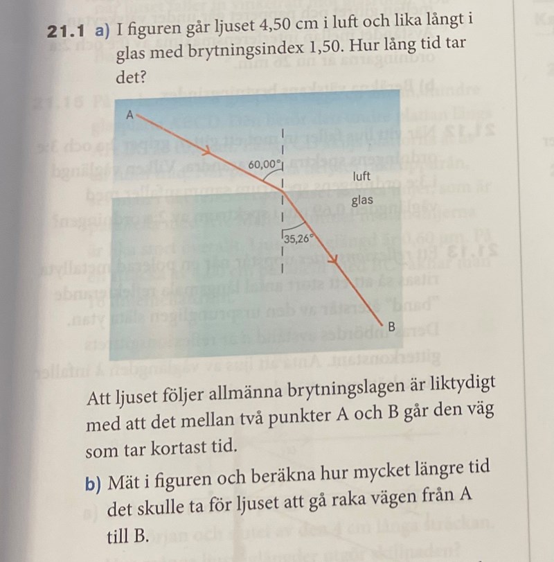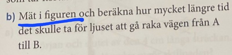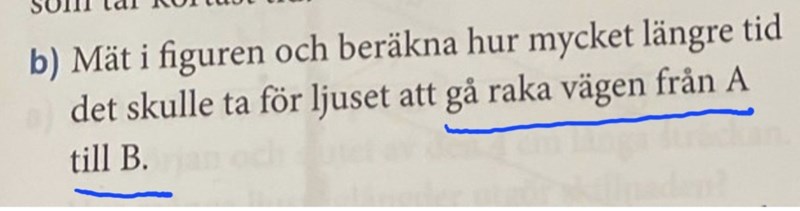 Men är det inte lika stor sträcka som ljusstrålen kommer passera i b frågan?