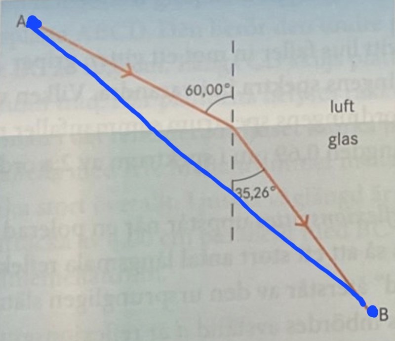 Är det inte lika stor sträcka som ljusstrålen kommer åka igenom luft och vattnet