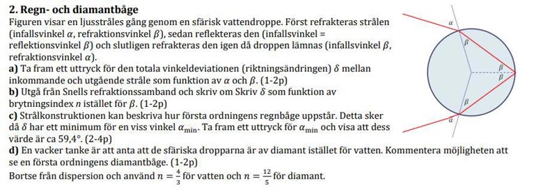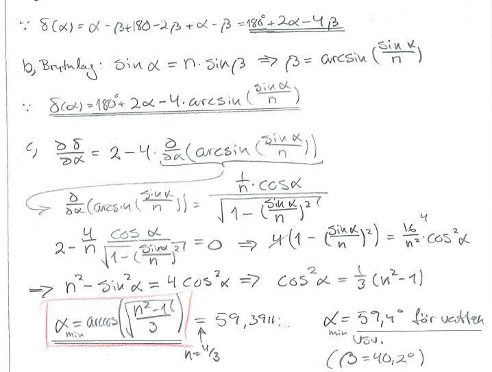 Läste kanske lite som hastigast och endast c-frågan, men det står ju att det sker då har ett minimum för en vinkel . Hur brukar vi hitta minimum-punkter?