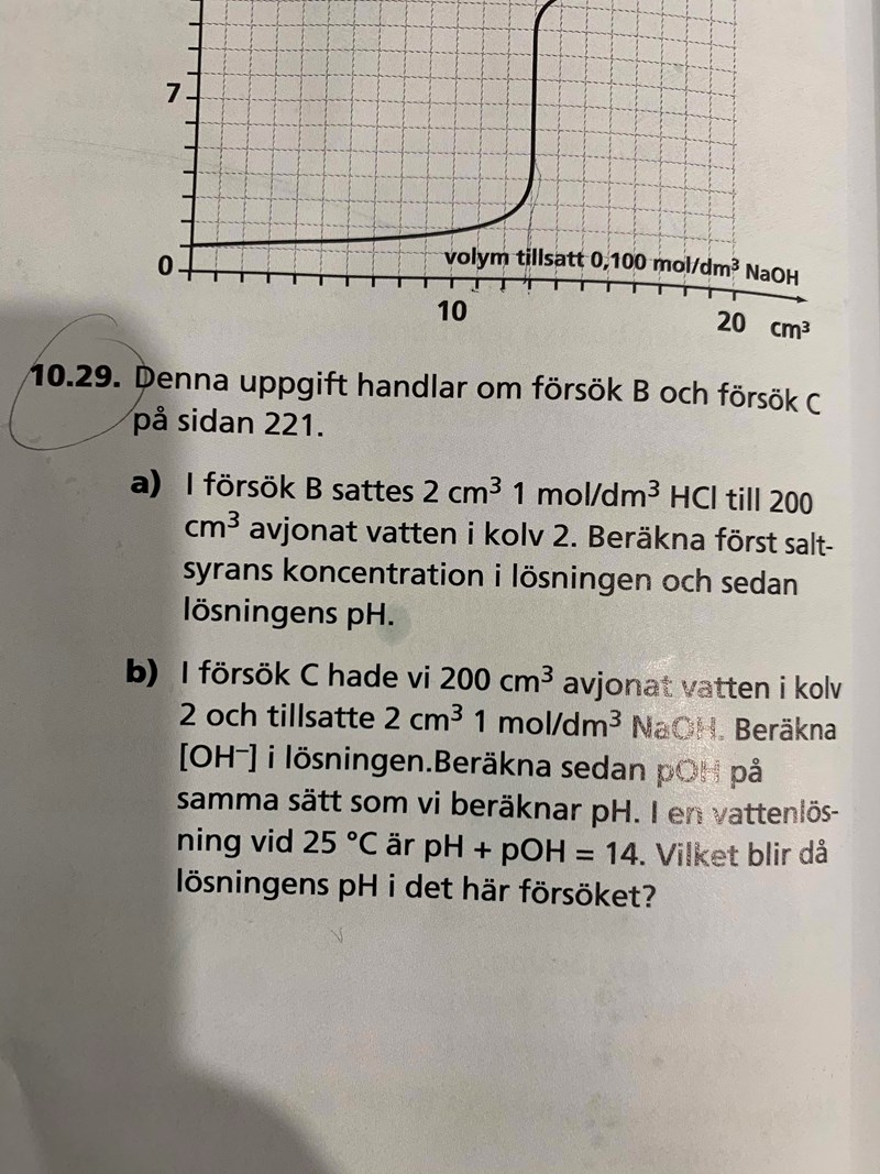 Jag förstår mig inte på denna uppgift i a) det står räkna ut koncentrationen för HCl men endå nämner dom att HCl är 1mol/dm3?