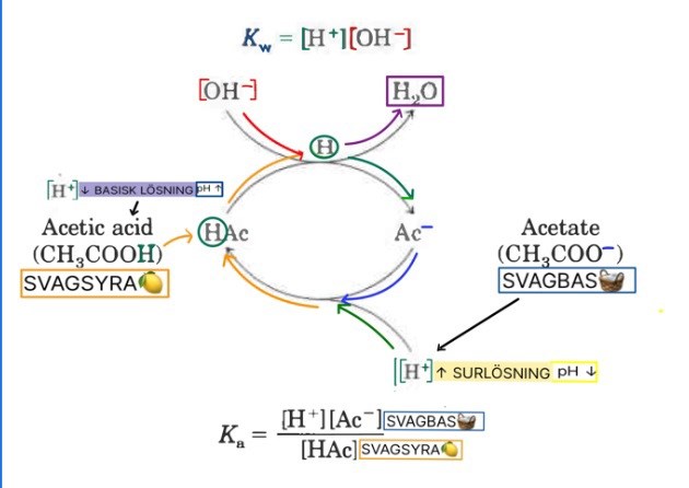 Kapacitet💥 → ta upp (H➕) eller (OH➖) mha reversibla dissociation av (CH3COOH)