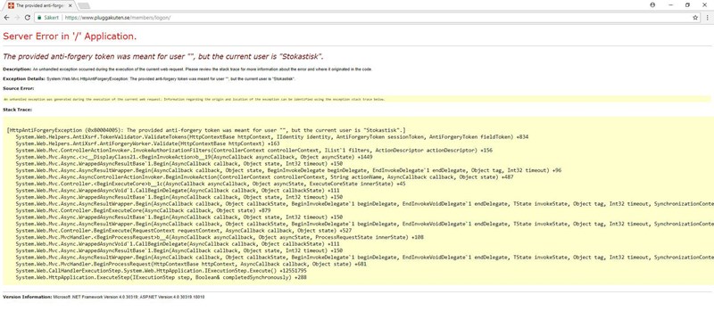 Jag fick nyss följande fel när jag försökte logga in på sidan