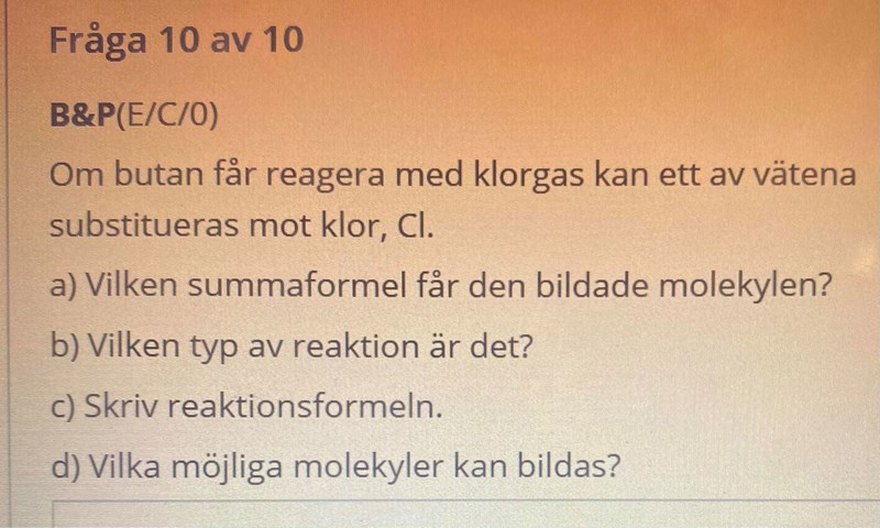 Jag har fastnat på d frågan där jag inte förstår varför t.ex isomerer av butan kan räknas med? t.ex 1klor 2 metyl propan eller 2 klor 2 metylpropan?