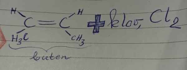 Det står i facit att denna förening kommer bli mättad, och jag vill förstå hur det gick till. Menas det att när klor adderas (utgår dem från att jag vet att det är Cl2 dem menar och inte Cl? Dem skrev bara att klor adderas) så sätter sig en Cl på ensamma väte #1, och en Cl sätter sig på ensamma vätet #2?