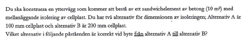 3) Men väggkonstruktionen innehåller ju mer cellplast och mindre betong i B.