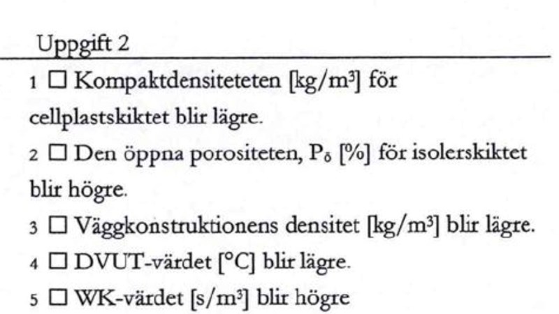 Byggfysik - fukt: Vilket påstående stämmer om tjocklek ökar på skikt?