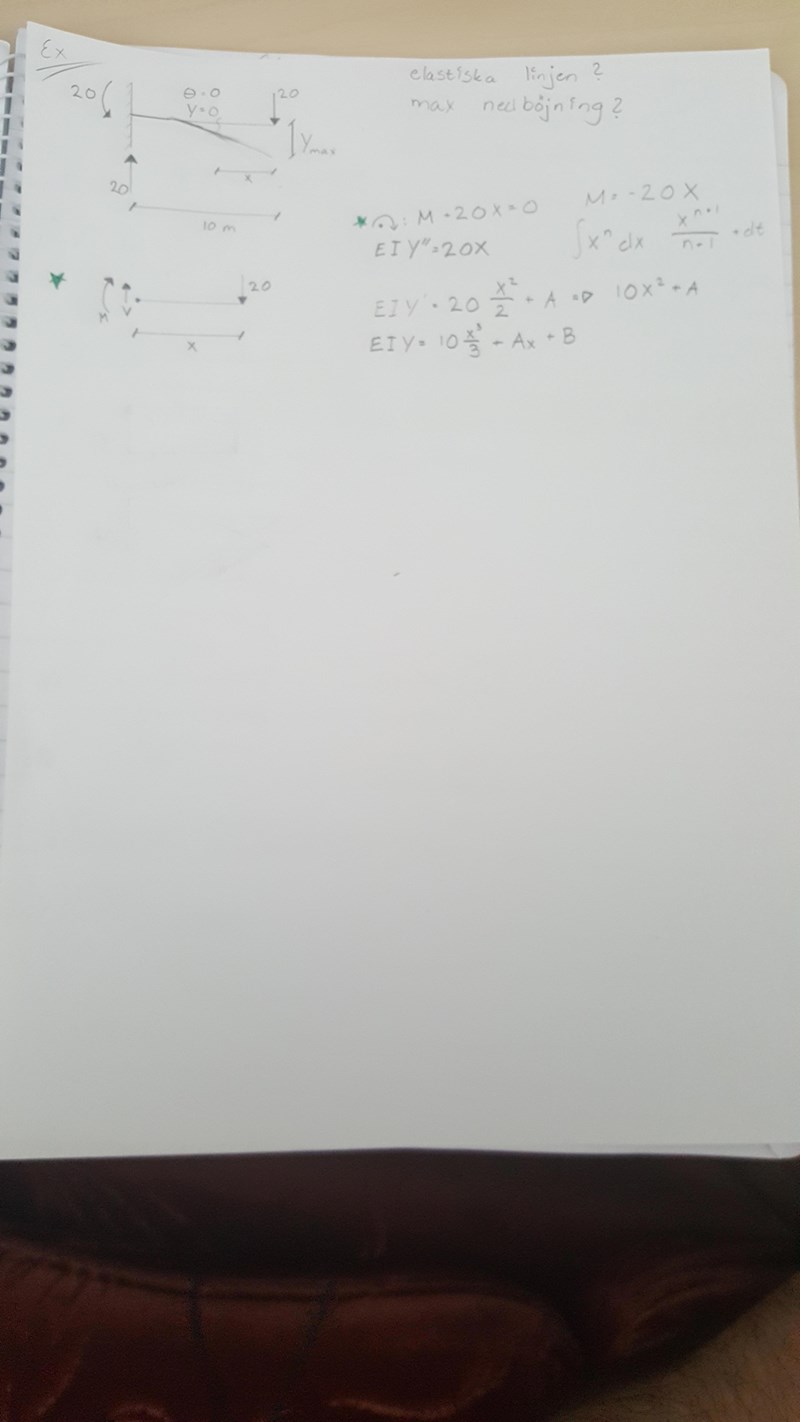 För att ta reda på konstanterna behöver du 2 randvillkor. Vad kan du säga om lutningsvinkeln respektive nedböjningen vid infästningen vid väggen?