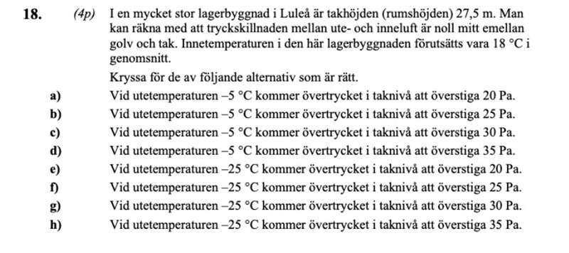 Det står att man kan räkna med att tryckskillnaden mellan ute-och inneluft är noll mittemellan golv och tak, d v s på höjden 13,75 m. Högre upp är det övertryck (eftersom varm luft stiger uppåt), längre ner är det undertryck. Trycket är som högst strax under taket.