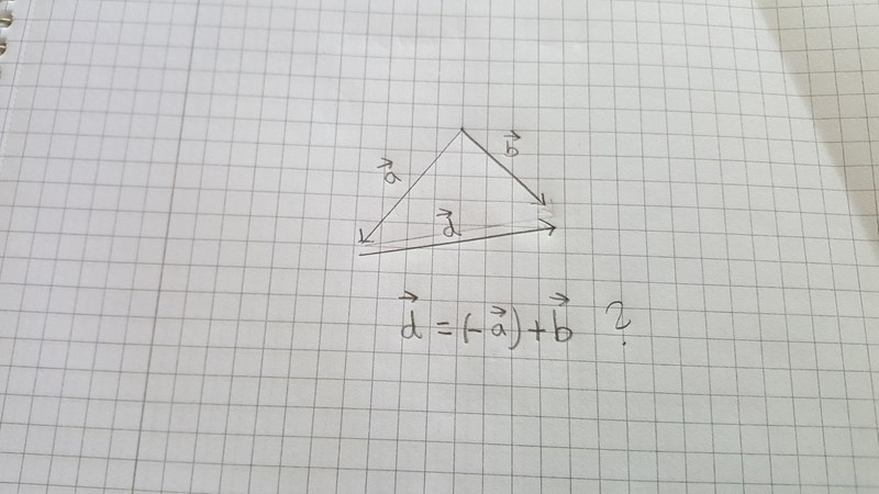 Om jag har en vektor a och från dess början börjar vektor b. Från spetsen på a går det en vektor d till spetsen på vektor b. Jag vill skriva vektor d som en term av a och b. Kan jag skriva minus a plus b =d ? Alltså vända på vektor a:s riktning? Eller blir det fel? Jag läser början av Linjär algebra 1.