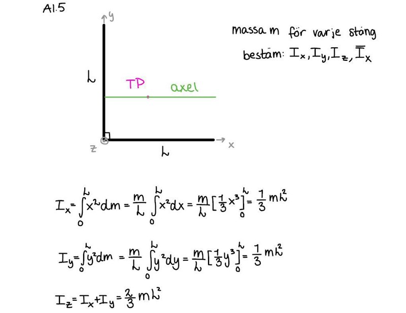 Jag förmodar att stängerna är homogena. Om du då tar en sektion av stången med längd och tillhörande massa kommer kvoten mellan och vara konstant (att stången är homogen innebär ju att det läggs till lika mycket massa per meter överallt). Du kan då få att för en liten massförändring och motsvarande längdändring kommer kvoten ha samma värde som alla andra delar av stången. Eftersom hela massan och längden är kända kan vi konstatera att denna kvot är . Med detta får vi: