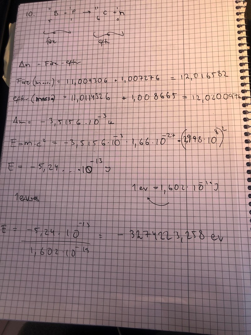 Aha, så när jag tagit skillnaden på efter- före så in jag stoppa in den i einsteins formel: E=m*c^2 ?