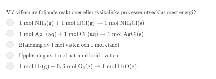 Får man ha tillgång till tabelldata? I så fall kan man jämföra bildningsentalpier och eventuellt lösningsentalpier.