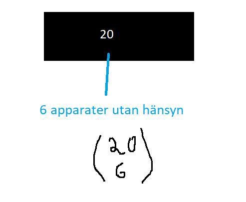 Detta jämför vi med på hur många sätt vi allmänt kan välja ut 6 apparater av 20 ur utan hänsyn till något vilket är
