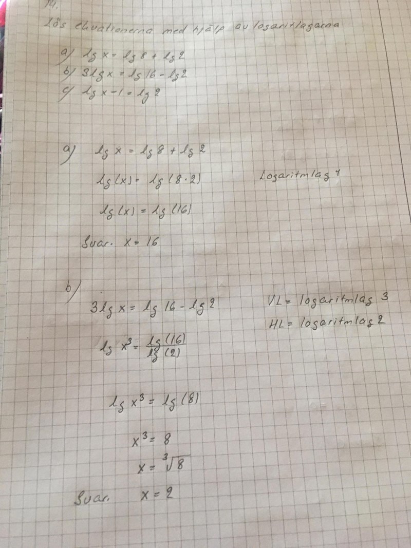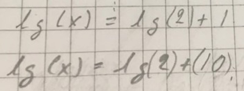 Du har troligtvis tänkt rätt, men det framgår inte hur du går från lg(2) + 1 till lg(2*10) i detta steg: