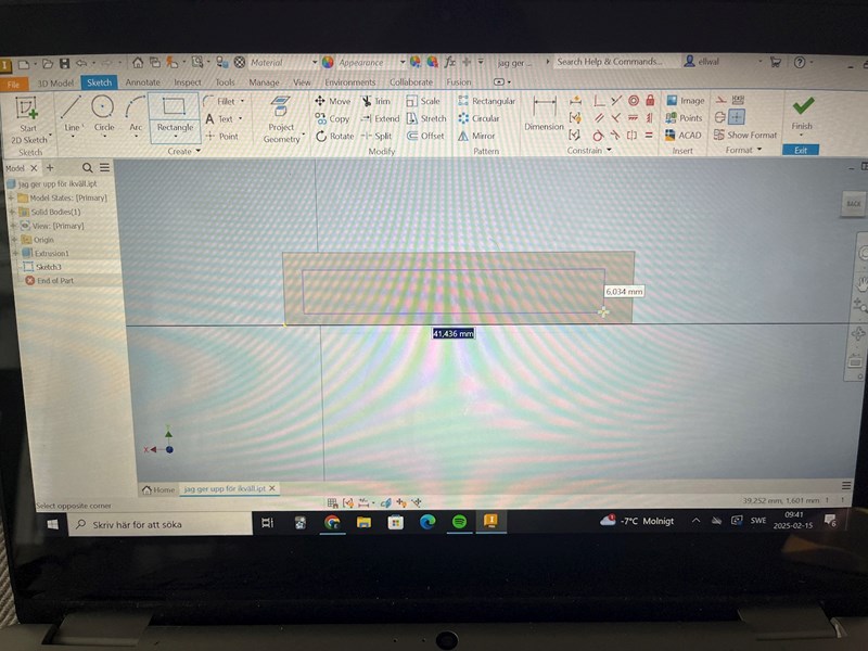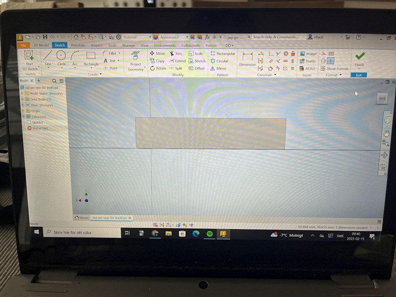 bild 1 visar hur det ser ut innan jag försöker lägga rektangeln på ytan. Jag är i sketch-mode hela tiden.
