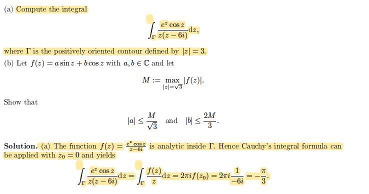 Förlåt, jag läste frågan lite för fort. Notera att din integrand inte är analytisk innanför stora gamma (z=0 ger problem). I facit utnyttjar man integralsatsen för att räkna ut din integral genom att ansätta f(z) som din integrand men utan faktorn 1/z (vilket gör att deras f är analytisk innanför stora gamma).